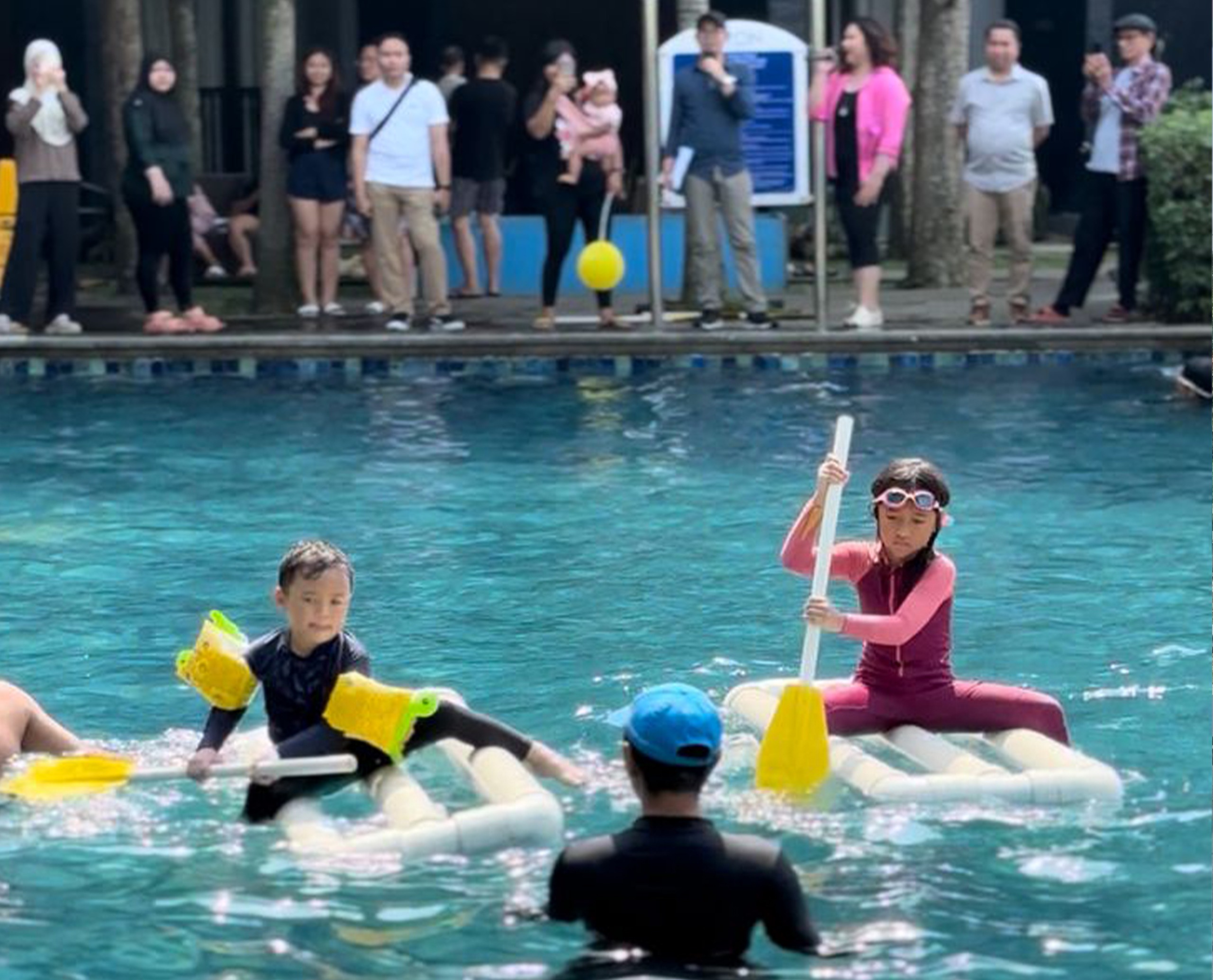 Tak kalah seru, anak-anak pun ikut serta dalam Racing Boat Competition yang berlangsung di area area kolam renang lantai 3. Perlombaan ini memacu semangat sportivitas sekaligus menghadirkan tawa dan keceriaan di tengah suasana asri Aston Sentul.