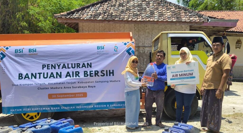 Area Manager BSI Area Surabaya Raya, Ogi Yogasyara, menyampaikan bahwa bantuan ini merupakan wujud kepedulian BSI dan BSI Maslahat terhadap masyarakat terdampak. “Air bersih adalah kebutuhan paling mendasar. Kami berharap bantuan ini dapat meringankan beban warga Krampon Tengah dan memberikan manfaat nyata,” kata Ogi.
