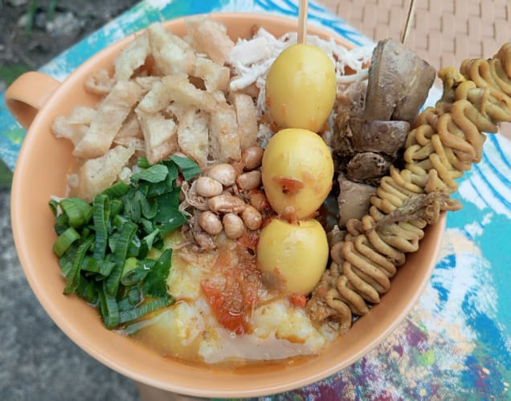 Terlebih kuah kuning yang merupakan kuah bubur, bercita rasa gurih rempah. Ditambah aneka toping seperti ayam suwir, kacang kedelai goreng, cakue iris, tongcai (asinan lobak kering), daun bawang, bawang goreng, kerupuk, serta sambal yang dimasak. “Hmmm lezat.