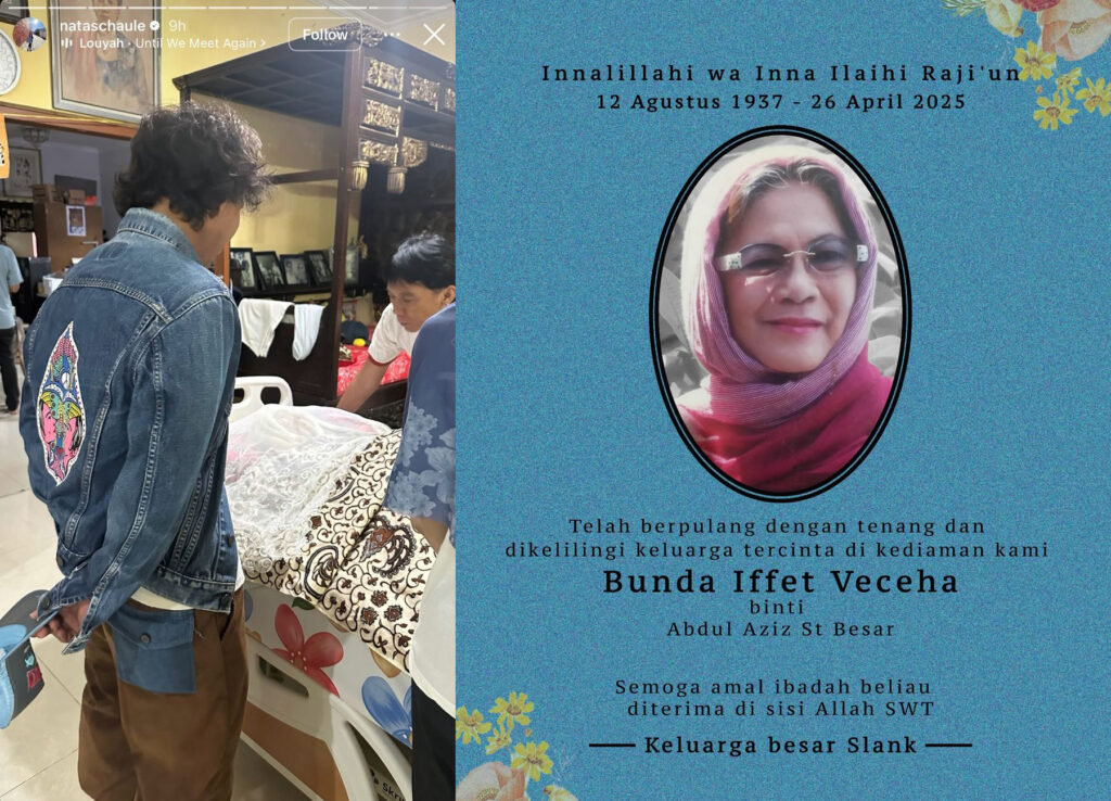 “Telah wafat dengan tenang diiringi keluarga tercinta, “Bunda Iffet Veceha binti Abdul Azis St Besar” (87 tahun) pada hari ini Sabtu 26 April 2025 pukul 22.42 wib. Semoga almarhumah wafat dalam husnul khotimah, diampuni dosa2nya dan mendapat tempat terbaik disisiNYA,” akun Instagram Slankdotkom mengonfirmasi melalui unggahannya, Minggu, 27 April 2025.