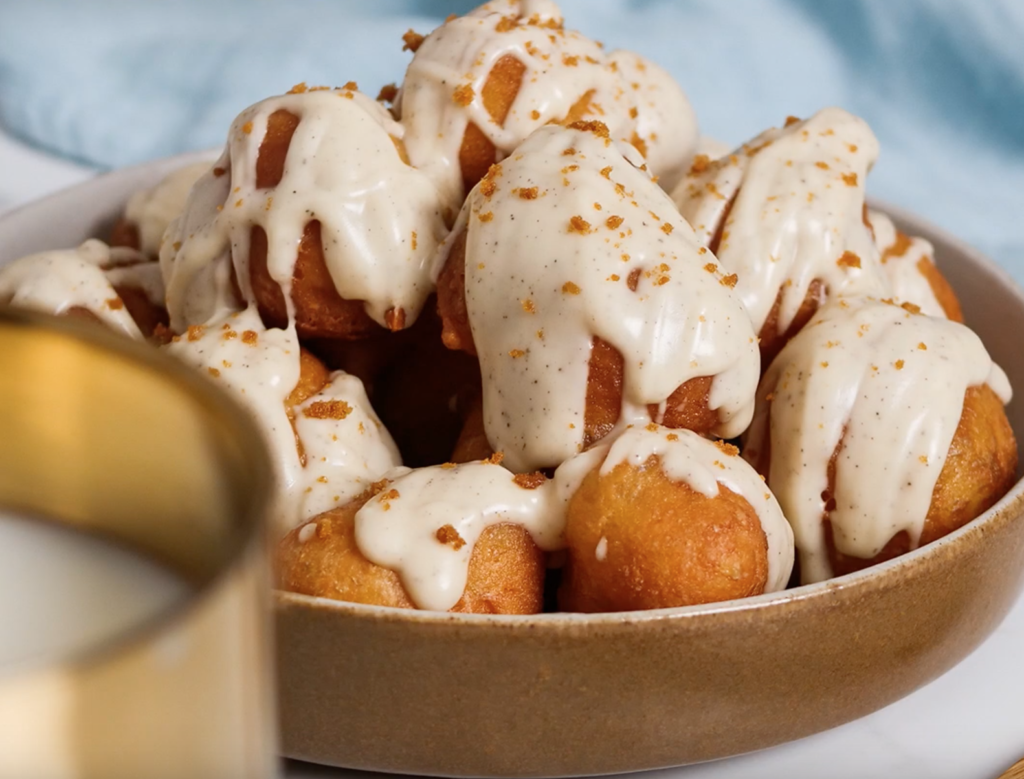 - Ambil sedikit adonan dengan sendok yang dicelup ke minyak atau scoop es krim. Goreng dalam minyak dengan api sedang hingga kecoklatan