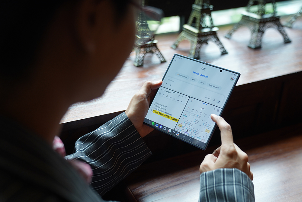 Layar Galaxy Z Fold7 yang lebar, mempermudah Aulion untuk multitask untuk melakukan riset, mencatat di notes, dan mengecek kalender