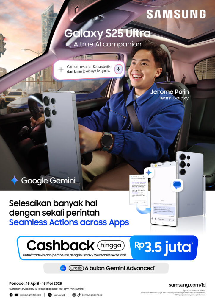 Samsung memberikan promo menarik hingga 15 Mei 2025: cashback trade-in dan potongan harga untuk pembelian Galaxy Wearables dan aksesori hingga Rp3.500.000. Pembeli juga mendapatkan akses gratis ke Google Gemini Advanced selama 6 bulan.
