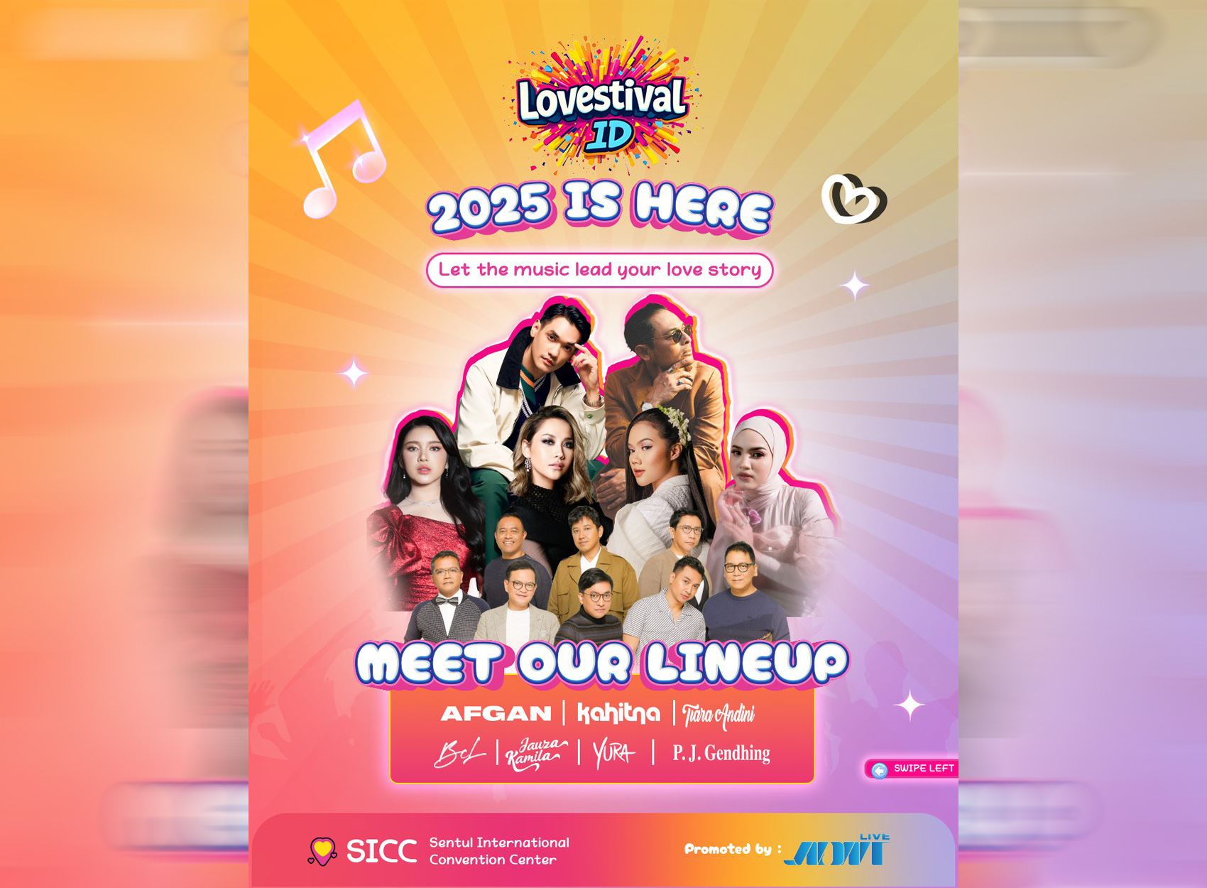 WanitaIndonesia.co — Sederet bintang musisi ternama tanah air seperti Kahitna, Afgan, Bunga Citra Lestari (BCL), Yura Yunita, dan Tiara Andini. akan hadir meramaikan gelaran ajang Lovestival ID 2025, festival musik yang paling dinanti di akhir tahun yang diselenggarakan oleh Nant Live pada 20 Desember 2025 mendatang di Sentul International Convention Center (SICC).