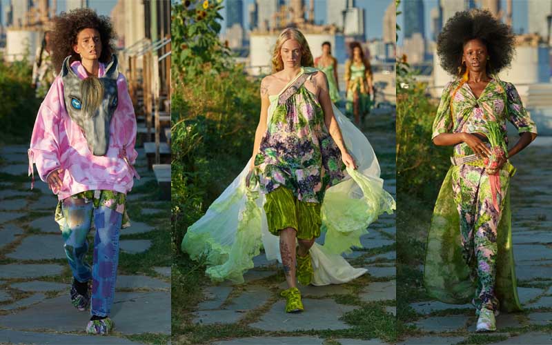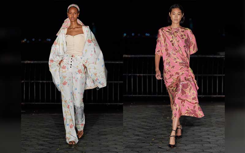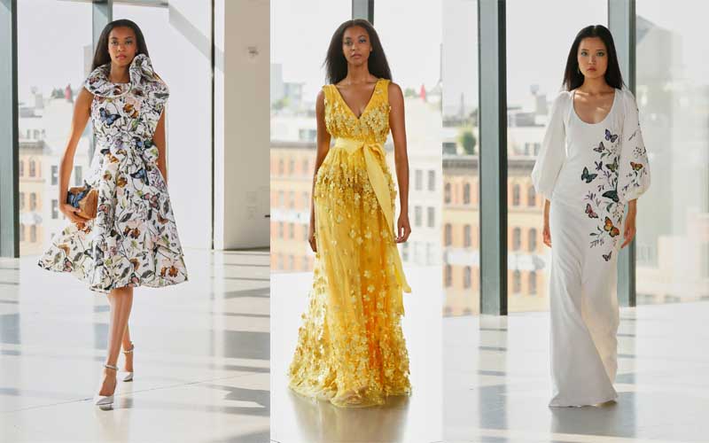 Motif bunga dituangkan pada koleksi 2022 dalam bentuk renda, embellishment, payet, batik afrika, dan motif cetak aneka warna. Collina Strada yang mengangkat gaya hidup Hippie tahun 70an banyak mengambil nuansa floral dalam warna pastel kehijauan, sementara Badgley Mischka mengambil sentuhan floral dan kupu-kupu. CDLM mengangkat motif bunga-bunga kehijauan dan aksen bulu berukuran besar sebagai fokus tampilannya. Perancang senior Carolina Herrera mengangkat print floral kemerahan di atas cerulean blue yang menciptakan kontras warna menarik.