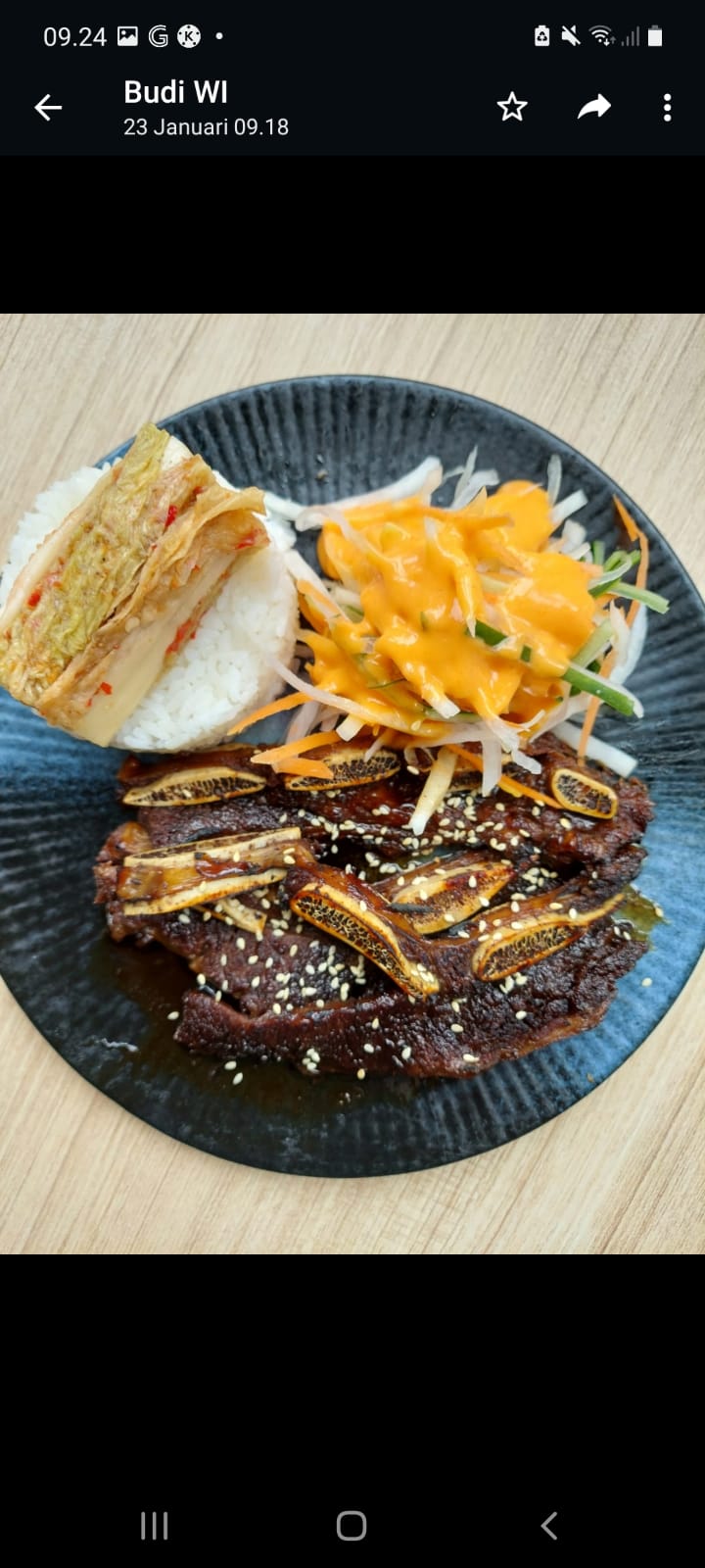 6. Sajikan iga dengan nasi putih, kimchi, dan salad.