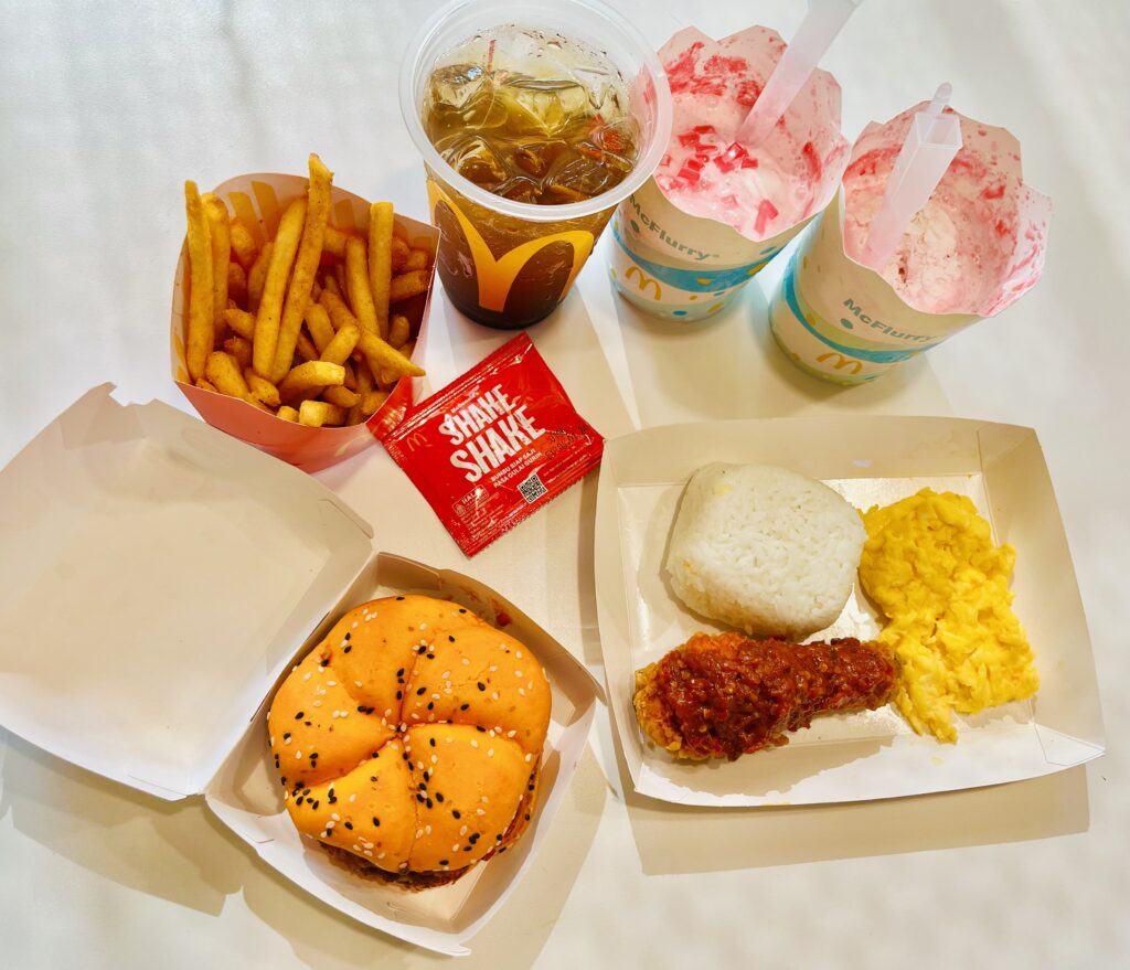 Tidak hanya itu, terdapat juga pilihan pendamping McShaker Fries Gulai Gurih, kentang goreng gurih dengan bumbu gulai yang sedap dan pedas, tersedia dalam ukuran medium dengan harga mulai dari Rp19.545 (sebelum pajak) dan ukuran large dengan harga mulai dari Rp25.000 (sebelum pajak). Minuman Soda Asam Jawa yang segar dengan rasa asam jawa dapat dinikmati dengan harga mulai dari Rp12.273 (sebelum pajak). Jangan lewatkan juga penutup istimewa, McFlurry Es Kopyor, es krim McFlurry khas McDonald’s yang disajikan dengan es kopyor dan dua pilihan topping, kelapa kering, dan Jelly, dijual dengan harga Rp15.455 (sebelum pajak).