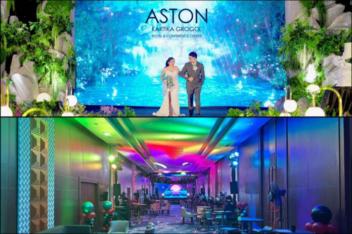 Fahri, Senior Sales Manager Wedding & Social Event Aston Kartika Grogol, menuturkan bahwa ballroom hotel kerap menjadi incaran banyak pasangan yang hendak melangsungkan pernikahan. “Selain lokasinya yang strategis, ballroom kami memiliki desain mewah dengan ceiling tinggi yang membuat suasana semakin megah dan berkesan,” ujarnya.