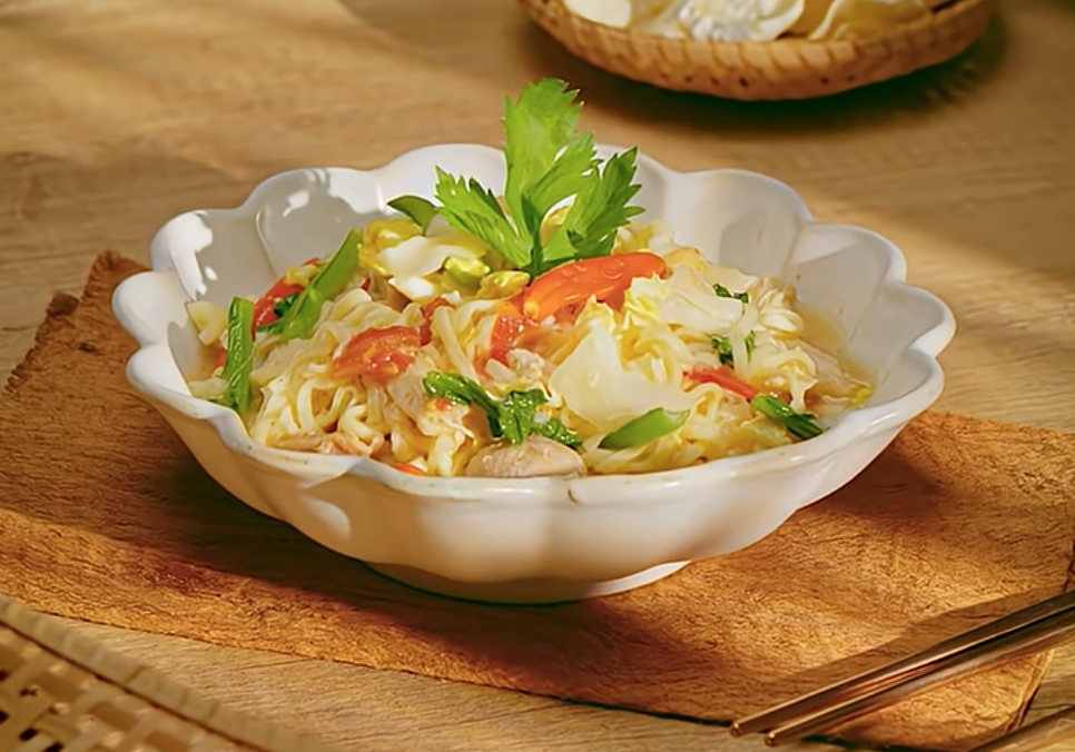 - Tambah Lauk Sesuai Selera – Kalau ingin lebih lengkap, kamu bisa menambahkan suwiran ayam goreng, bakso, atau potongan sosis. Setiap tambahan bahan akan memberi tekstur dan rasa berbeda yang tetap pas dengan kuah gurihnya.