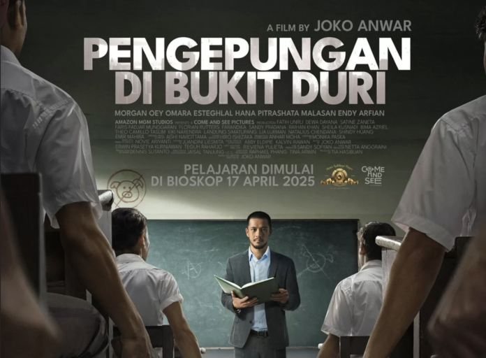 WanitaIndonesia.co, Jakarta – Film Pengepungan di Bukit Duri adalah karya drama-thriller yang menggabungkan produksi lokal Come and See Pictures dengan Amazon MGM Studios dari Hollywood. Berlatar masa depan, pada tahun 2027, cerita ini mengikuti Edwin, diperankan oleh Morgan Oey, yang bekerja sebagai guru pengganti di SMA Bukit Duri, sebuah sekolah yang menampung siswa-siswa dengan beragam masalah.