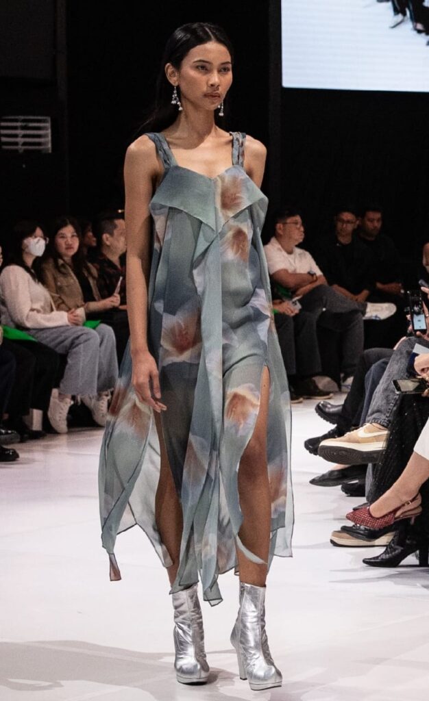 Koleksi memperlihatkan komitmennya pada aspek berkelanjutan seperti penggunaan material ramah lingkungan, mengatakan tidak pada penggunaan kulit maupun bulu hewan. Desainnya ringkas ke bentuk inti, melalui siluet terstruktur, detail yang halus, serta penggunaan material yang ramah lingkungan.