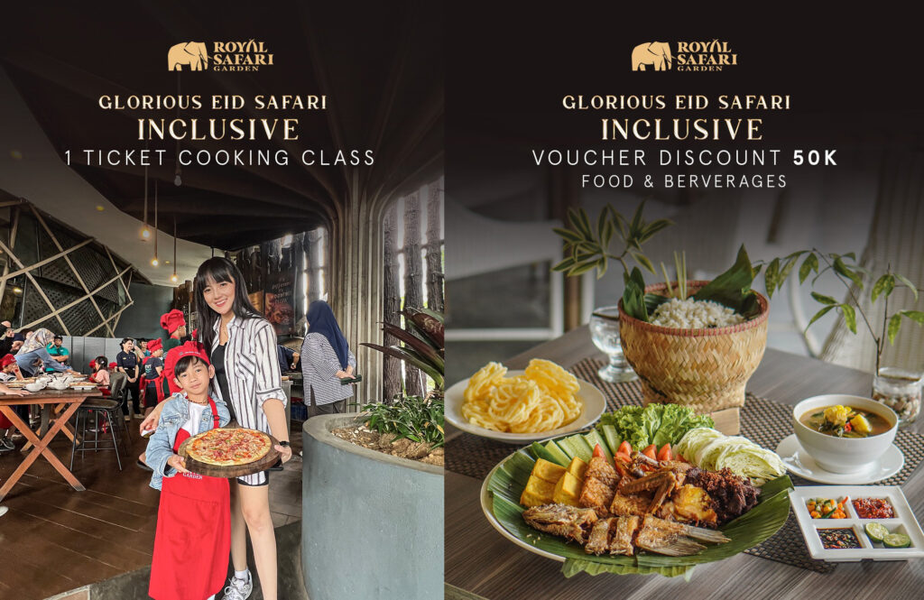 Paket liburan spesial Lebaran ini tersedia untuk periode menginap 30 Maret – 1 April 2025 atau 31 Maret – 2 April 2025. Dengan paket ini, para tamu dapat menikmati pengalaman menginap selama 3 hari 2 malam di Royal Safari Garden, lengkap dengan berbagai fasilitas dan aktivitas yang menarik. Tamu akan mendapatkan akomodasi nyaman, sarapan pagi setiap hari untuk dua orang, voucher diskon untuk F&B, satu pack sayuran segar dari kebun hidroponik, satu tiket recreation pass, satu tiket cooking class, dan satu tiket herbivore feeding.