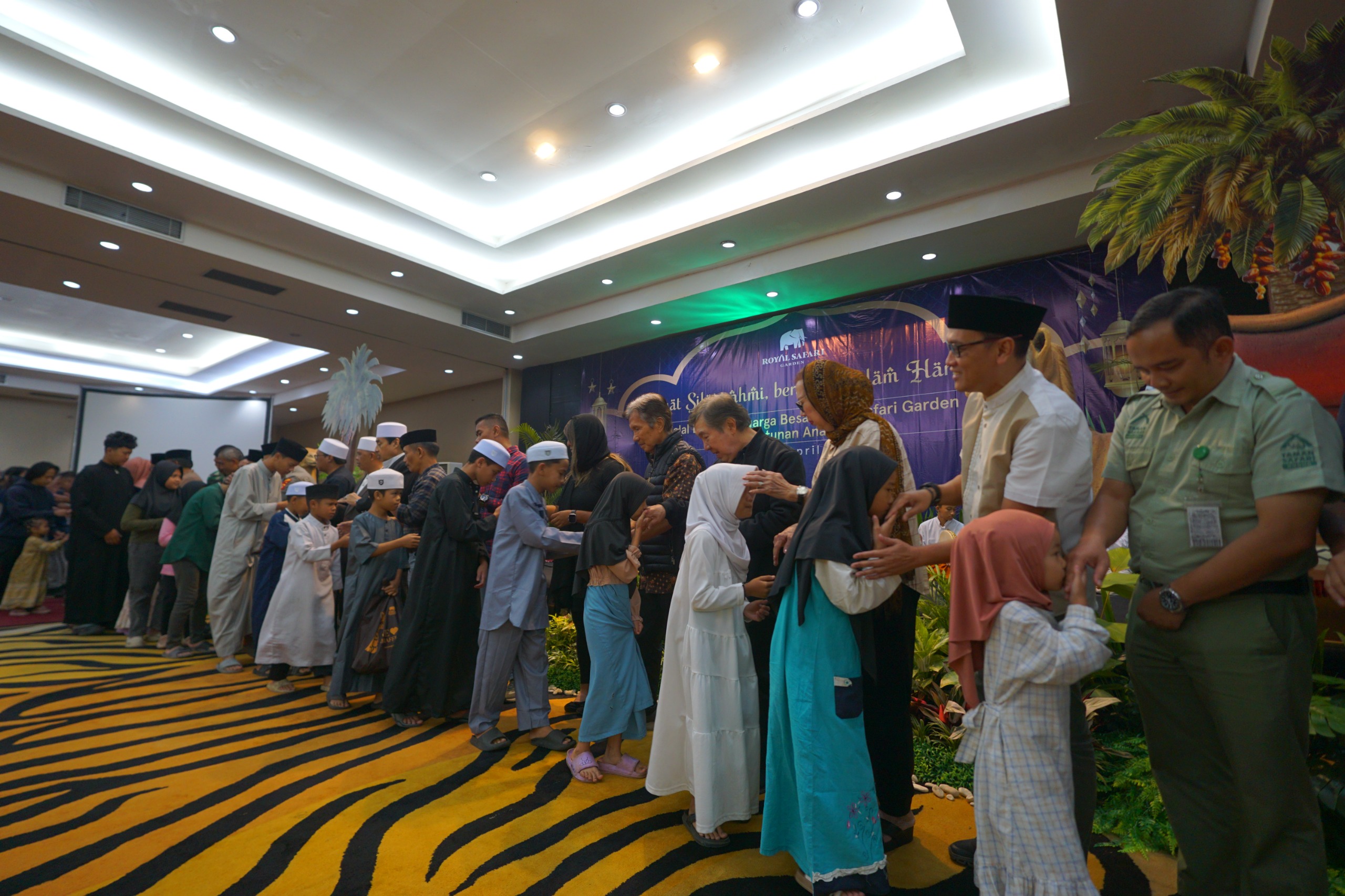 Momen penuh haru terjadi saat prosesi berbagi berkah kepada anak-anak yatim dilakukan. Royal Safari Garden menyerahkan santunan sebagai bentuk kepedulian dan cinta kasih di momen kemenangan ini. Bingkisan dan doa menjadi simbol kepedulian yang mendalam, mempererat ikatan antara perusahaan dan masyarakat.