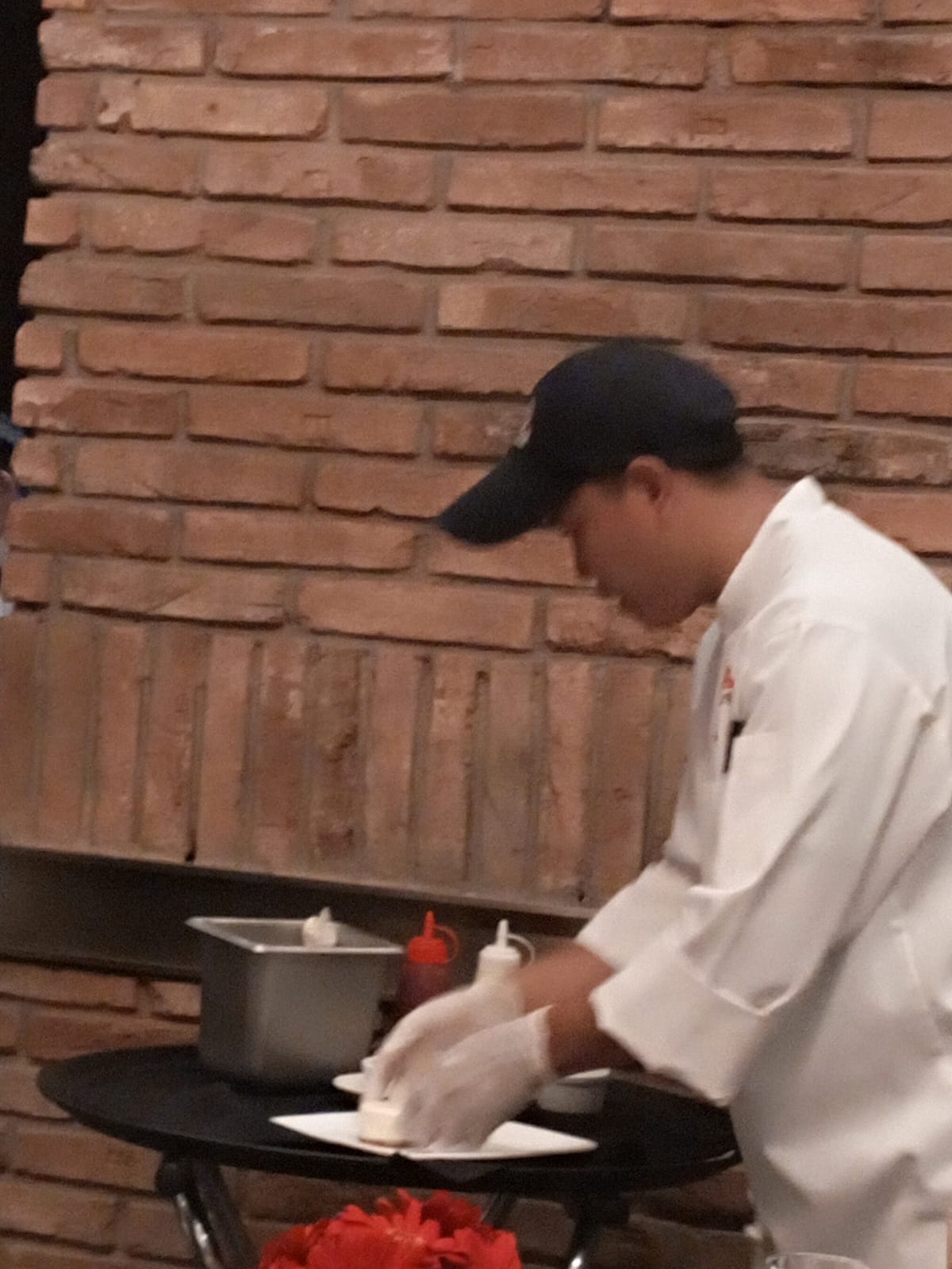 Perayaan bersantap kian semarak ketika Sous Chef Ruth’s Chris Steak House, Yuli Haris Pujianto mendemokan presentasi hidangan penutup Ruth Dessert berupa Cheesecake.